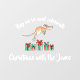 Cute light-hearted hopping kangaroo jumping over gifts and presents, window cling, customize with your own words. Uniquely drawn and then painted watercolor illustration and design by Sarah Trett. www.sarahtrett.com for www.mylittleeden.com on Zazzle