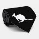 Kangaroo: white silhouette of a Kangaroo (facing left) on a black background on this quality tie - a Stronsy design collectable. There is another version of this facing right.