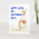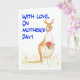 A Mother's Day card with a handpainted kangaroo with a baby in her pouch, giving her a bouquet of flowers for Mother's Day. Blank inside for your own message.