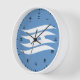 Clock with a design with the flag of Hyōgo Prefecture in Japan (兵庫県, Hyōgo-ken), a blue flag with a white symbol., with kanji clock face