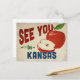 A charming Kansas vintage travel postcard featuring a lovely red apple, along with fun retro style text that says, "See you in Kansas"