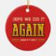 Celebrate the Kansas City Chiefs' legendary threepeat with this commemorative Super Bowl Christmas ornament! Featuring the bold "Oops! We Did It Again" design, this limited-edition keepsake is the perfect way to honour the Chiefs' historic victory. Whether you're decking the halls or gifting a fellow fan, this ornament is a must-have for every member of Chiefs Kingdom. Made for true fans, this festive decoration will shine bright on your tree for years to come! Note: Back of ornament says "Super Bowl: 2023, 2024,2025"