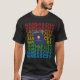 The T-shirt design saying "1850," "Kansas City" and "Missouri" is colored black with red, orange, yellow, green, blue, dark blue, black and white ink in it. It is made out of 100% cotton.