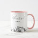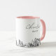 Kansas City wedding coffee mug. The design showcases a stunning skyline sketch with the ability to personalize with your name or the names of your bridesmaids, guests, or others. Easily update the mug size and colour to your liking.