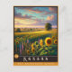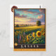 The illustration highlights Kansas’s most cherished features, including the breathtaking Flint Hills, the golden fields of wheat stretching to the horizon, and the majestic Monument Rocks towering in the western plains. Every detail is meticulously crafted, from the warm glow of a Kansas sunset casting its hues over the prairies to the intricate patterns of the wildflowers dotting the open fields. Whether you’re drawn to its rural tranquillity or its storied history, this postcard encapsulates the heart of the Sunflower State.