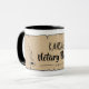 Advertise your notary public business with style and pride. Makes a thoughtful and practical gift for any notary professional who provides legal services to the public. This pen and parchment roll design is presented over a tan scroll papyrus background. Elegant feather quills and ink pots anchor each end of the document. Coffee mug is easily customized by changing "Kansas" to a name, city, phone number, or any other text of your choice.