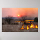 A rancher on horseback checks a fire line in a controlled burn on his Flint Hills, Kansas, ranch. The tallgrass prairie survives in areas unsuited to plowing, such as this section of the rocky hill country of the Flint Hills, which run north to south through east-central Kansas. Once vast, tallgrass prairie has shrunk to only one to four percent of its former size in North America. Ranchers replicate natural fires when they burn the prairie every few years to destroy tree seedlings and alien plant species, which preserves the prairie as a grassland. The tallgrass prairie biome depends on prairie fires, a form of wildfire, for its survival and renewal. Such fires may either be set by humans (for example, Native Americans used fires to drive bison and improve hunting, travel, and visibility) or started naturally by lightning. Another view: