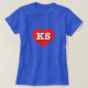 This t-shirt features a vibrant red heart containing the bold, white, upper case letters KS, the official abbreviation for the state of Kansas, the sunflower state.