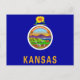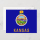 The official flag of Kansas consists of a dark blue rectangle arranged horizontally with the state seal aligned in the centre. The state name "KANSAS" is printed below the seal. Above the seal is a sunflower sitting over a gold and light blue bar. The state seal tells the history of Kansas and pioneer life. The thirty-four stars clustered at the top of the seal signify that Kansas was the 34th state to be accepted into the Union of the United States.