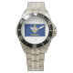 Has heft and feel of expensive stainless steel quartz watches. Good band with safety catch. I removed links, which is easy because engraved arrows show direction to push the linking pins. As always by this seller, the image (a railroad logo) is a perfect reproduction of my emailed image, and is precisely spaced and aligned.