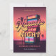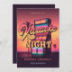 Karaoke 30th Birthday Retro Party Invitation. A colourful and bold design featuring an old-school jukebox illustration in front of a beautiful purple, pink, and orange sunset with palm trees in the background. The words "Karaoke Night" feature prominently in vintage typography. Celebrate your milestone birthday with your friends while unleashing your inner rockstar! It'll be a night to remember.