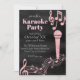 Karaoke Party Pink Glitter Music Notes on Black Invitation