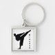 Great key chain for anyone into martial arts, with a black silhouette of a man, in a high kick form. Black text, running vertical, is customizable to read anything you want. Personalize for your favourite karate champ or for yourself. Makes a great little gift.