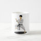 Frappez une magnifique pose de karaté comme celle-ci. Cette personne est en tenue karaté et ils sont dans une pose karaté. Cette personne karaté porte une ceinture noire. Cette pose karaté a l'air superbe sur cette tasse. Parfait pour vous-même ou comme cadeau