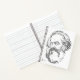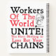 A spiral notebook featuring the face of Karl Marx on the front and the famous quote "Workers of the world unite; you have nothing to lose but your chains" on the back.