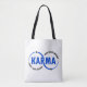 Karma - What Goes Around Comes Back Around (v2) Tote Bag. The artistic design exhibits the word "KARMA" within two never ending circles with "WHAT GOES AROUND" and "COMES BACK AROUND" curved to form sections of the circles. The two colors can be changed to your desired preference by editing the design. Makes the perfect gift for those who believe in Karma and in treating other well. Thank you for the support and visiting my store - UniquelyDistinct. Feel free to transfer this design on other Zazzle products.