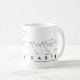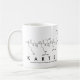 Karter spelled out in amino acids as K A R T E R (Lysine Alanine Arginine Threonine Glutamic acid Arginine) on a mug for the scientist in you.