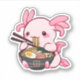 Indulge in the irresistible charm of our kawaii design inspired by Japan! This adorable chibi axolotl captures hearts as it happily slurps a bowl of steaming ramen soup with its tiny chopsticks. With its endearing expression and captivating cuteness, this design embodies the essence of adorable. The fusion of the delightful axolotl and the beloved Japanese cuisine creates a whimsical and lovable image that will transport you to the enchanting world of kawaii. Let this design bring a smile to your face and a touch of Japan's charm to your day!