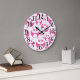 Kawaii Baby Pink and White Panda Pattern Large Clock