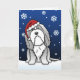 Cute Bearded Collie Christmas Cards are perfect to send to all the dog lovers on your holiday list this year! An adorable kawaii Beardie cartoon sits upon freshly fallen snow wearing a Santa cap, while snowflakes drift gently down all around him. The inside also has snowflakes and reads, "Happy Holidays!" You can easily customize the text to any message instantly. This is the grey and white coat colour.