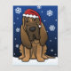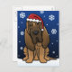 Bloodhound Christmas Postcards are perfect to send to all the friends and family on your holiday list! A super cute kawaii Bloodhound cartoon sits upon freshly fallen snow while wearing a Santa cap, and snowflakes drift gently down all around him. Other dog breeds are available.