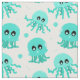 Kawaii Blue Octopus Cute Pattern Fabric. Funny blue octopi swimming, on a white background.