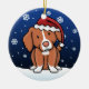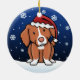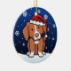 Cute Nova Scotia Duck Tolling Retriever Christmas Ornament, drawn in kawaii cartoon! This adorable dog breed is wearing a red Santa hat, and snowflakes are falling all around him. Absolutely darling, perfect for the dog lover's Xmas tree!