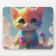 Kawaii Cute Rainbow Kitten Upon a Cloud Mousepad