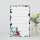 Cute Dalmatian stationery for spotted dog lovers! A kawaii cartoon of the dog breed sits by a red fire hydrant. Perfect to represent this popular firehouse dog! Adorable drawing with a background of blue spots. Lined for easier writing, unruled is also available.