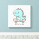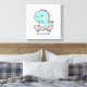 Kawaii Dino on Skateboard Personalized Text Canvas Print