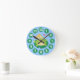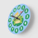 Kawaii frog with sparkling eyes on a lily pad round clock