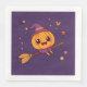 Make your Halloween party extra magical with this kawaii pumpkin paper napkin! Featuring a flying pumpkin on a broomstick, sparkling stars, floating candies, and little bats, this whimsical design adds fun and charm to your table decor. High-quality print, bold vector style, and cheerful pastel colours make it perfect for kids, parties, and Halloween celebrations.