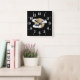 Kawaii Happy Bat Flying on Full Moon Square Wall Clock