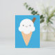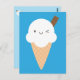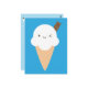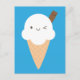 A classic British '99' vanilla ice cream cone with chocolate flake, kawaii style, on a bright blue background. The perfect sweet summer treat.