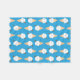 A repeat pattern of classic British '99' vanilla ice cream cones with chocolate flake, kawaii style, on a bright blue background. The perfect sweet summer treat.