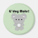 A cute magnet featuring a kawaii koala below the words G’day Mate! on a pastel green background. Great for koala lovers, Australians, and fans of Japanese pop art and kawaii fun!
