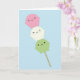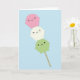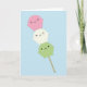 A stick of 3 colour Japanese mochi dango with kawaii faces.