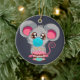 Kawaii mouse in face mask with cake ceramic ornament