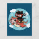 Kawaii Ninja Cat Riding a Red Dragon Postcard