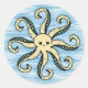 These sticker seals feature a kawaii octopus in ocean water. Original hand drawn design in shades of green, blue and yellow.