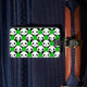 A cute panda bear, kawaii cartoon style pattern. Original design in black and white with green background.
