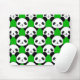 A cute panda bear, kawaii cartoon style pattern. Original design in black and white with green background.