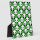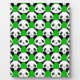 A cute panda bear, kawaii cartoon style pattern. Original design in black and white with green background.
