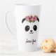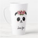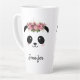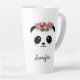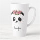 Cute panda floral crown personalized latte mug. Pretty chubby kawaii panda face with pink cheeks and floral crown. Easily add your name to personalize the mug. Lovely gift for a girl, a daughter, girlfriend on a birthday or other special occasion. Two sided image, on each side of the mug.