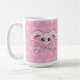 Cute kawaii cartoon of a pink polka dot bunny rabbit girly skull & crossbones with big googly anime eyes and pink candy cane striped heart cross bones.