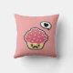 Kawaii Pink Cupcake with a Moustache Throw Pillow