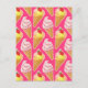 Kawaii pink pattern with strawberry ice cream postcard