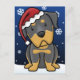 Send Rottweiler Christmas Postcards to all your animal-loving friends this year! A cute kawaii rottie cartoon sits upon freshly fallen snow wearing a Santa cap, while snowflakes drift gently down all around him.