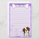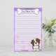 Fun Kawaii Saint Bernard stationery with a cartoon dog breed in the lower right corner. The top portion can be instantly personalized with your name inside the big doggie bone. Border and paper background are purple.