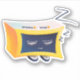 Kawaii sleeping clock sticker with a funny digital illustration depicting a yellow cute alarm clock character sleeping over cheerful light blue background.